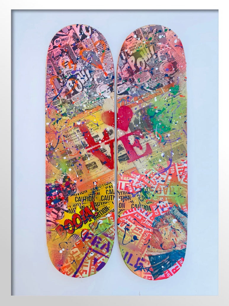 1/1 unique collage and paints on skateboard