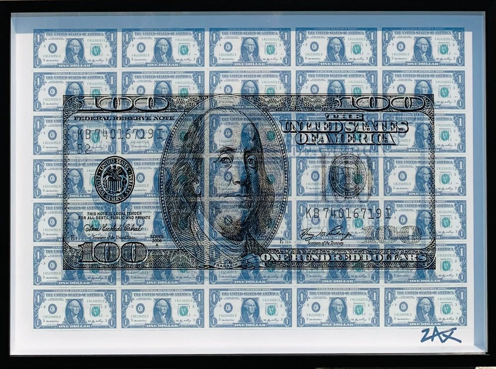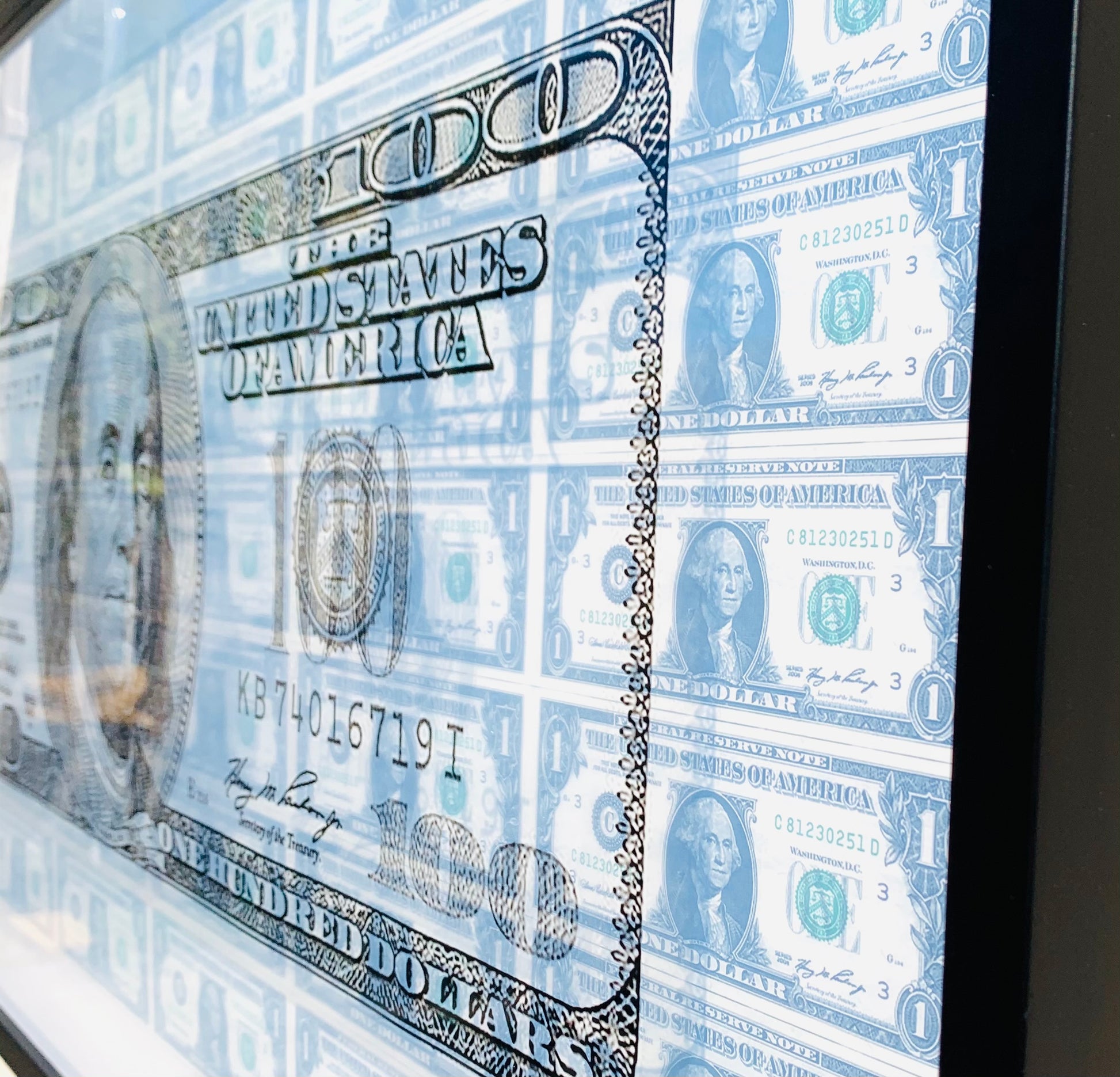 E.M. Zax "$1 to $100" 3D wall sculpture