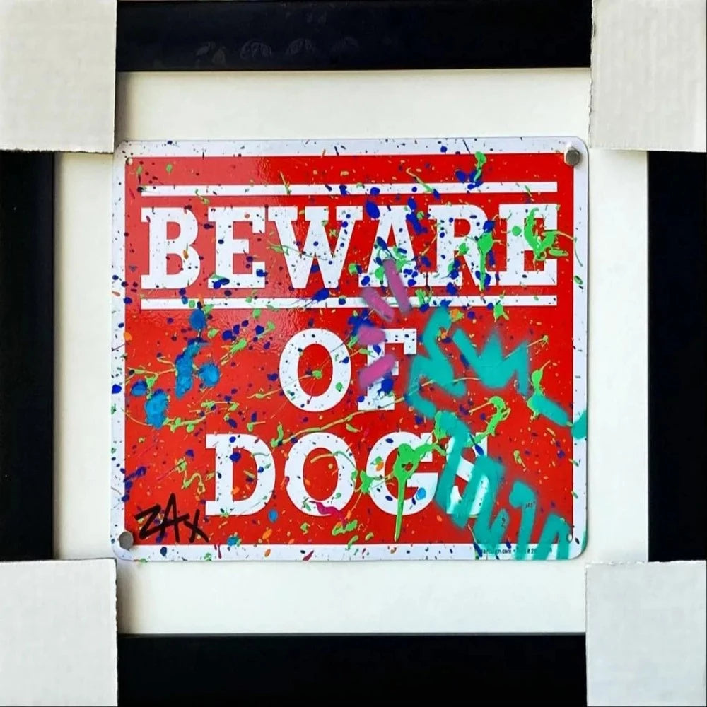 E.M. Zax Hand painted metal street sign "BEWARE OF DOG"