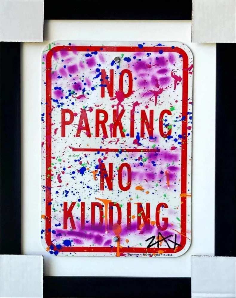 E.M. Zax Hand painted metal street sign "No Parking, No Kidding"