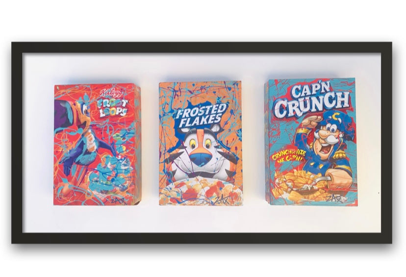 ZAX Set of 3 Hand painted with acrylic on cereal box